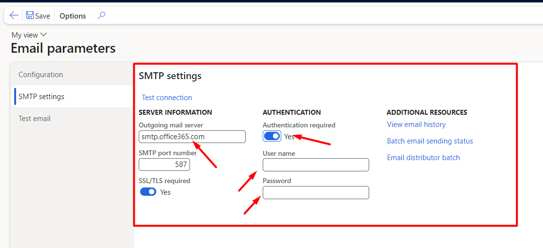 Email Parameter Setup